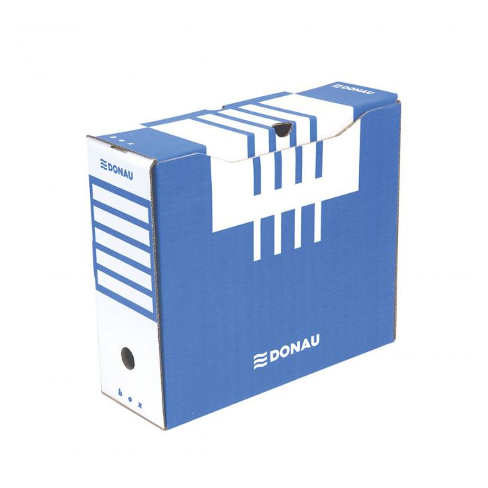 Archívny box z trojvrstvovej lepenky s certifikátom FSC® (drevo na jej výrobu pochádza z lesov, obhospodarovaných udržateľným spôsobom), bez obsahu kyseliny (pH 7,5). Vhodný na archiváciu dokumentov do formátu A4 s otvorom na ľahkú manipuláciu. Možnosť archivovať aj zakladač Donau. Predtlače na popis na dlhšej i kratšej strane umožňuje skladovanie vo vodorovnej aj zvislej polohe. Box je využiteľný samostatne alebo v kombinácii s archivačnými krabicami. Gramáž 390 g. Rozmery 297x120x339mm. Väčšie balenie 20 ks.