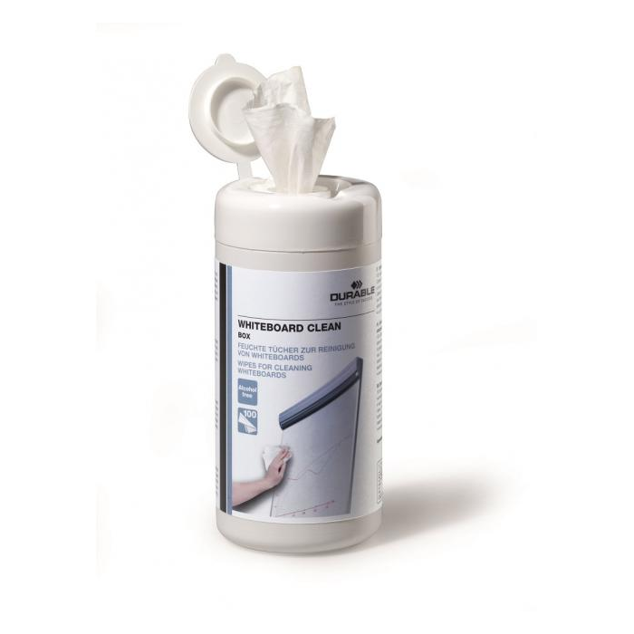 Čistiaci prostriedok na čistenie a obnovu bielych a plánovacích tabúľ. Odstraňuje mastnotu, nečistotu a fľaky po použití za sucha stierateľných popisovačov. Bez obsahu alkoholu. Dóza s impregnovanými papierovými utierkami pre rýchle a ľahké čistenie. Obsah: 100 ks