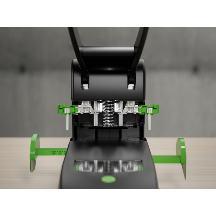 -Vďaka dvom prepojeným dorazovým lištám je možné dierovať papiery formátu A6 - A4 dokonale vycentrované.
