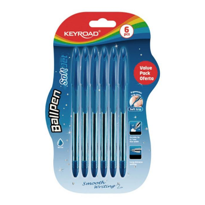 Guľôčkové pero KEYROAD Soft Jet 0,7 mm, blister 6 ks, modré
