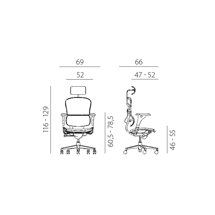 • opierka hlavy na Ergohuman 2 Ultra je pre nastavenie výšky nezávislá od operadla. Výšku je možné nastaviť v rozsahu 80 mm a uhol možno nastaviť v rozsahu 55 stupňov