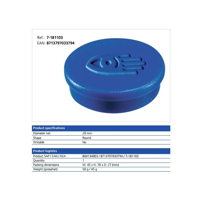 Magnet 20 mm modrý 10 ks