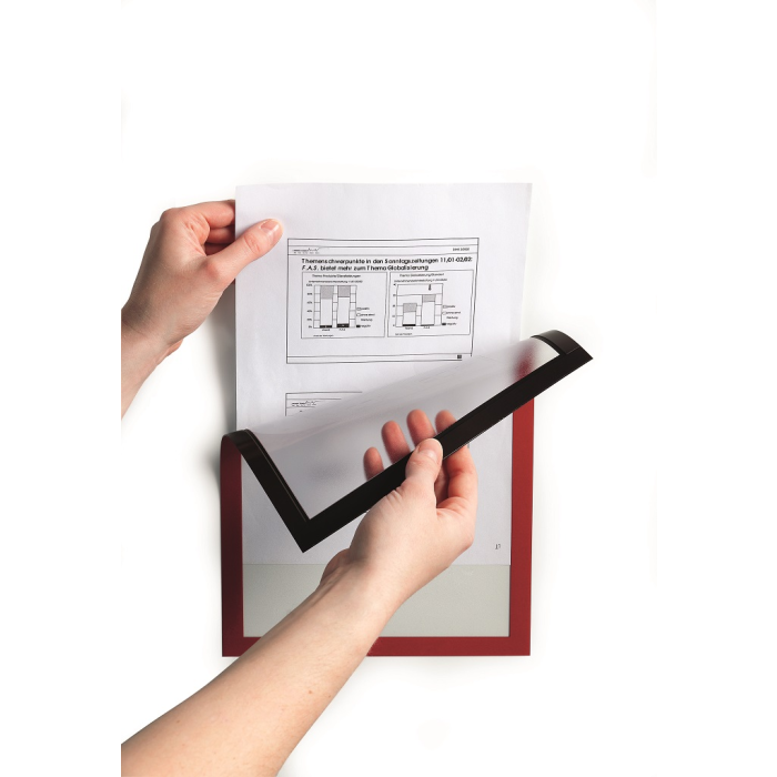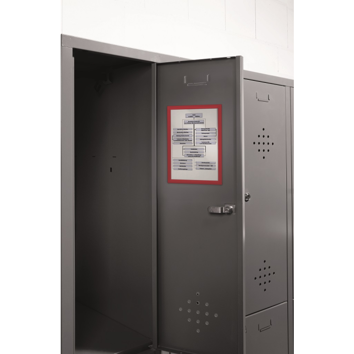 Informačný panel s magnetickou časťou na zadnej strane rámika na jednoduché a rýchle vkladanie informácie formátu A4. Vhodný na hladké magnetické povrchy, napr. magnetickú tabuľu. Farba červená. V balení 5 ks.