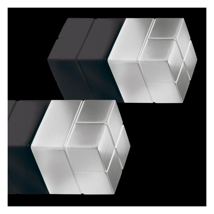 Štýlové neodymové magnety s lešteným povrchom v tvare kocky s vysokokvalitným obalom z hliníka v titánovo sivej farbe udržia na sklenenej tabuli artverum® cca 23 hárkov papiera. Rozmery 20 × 20 × 20 mm. Balenie 2 ks.