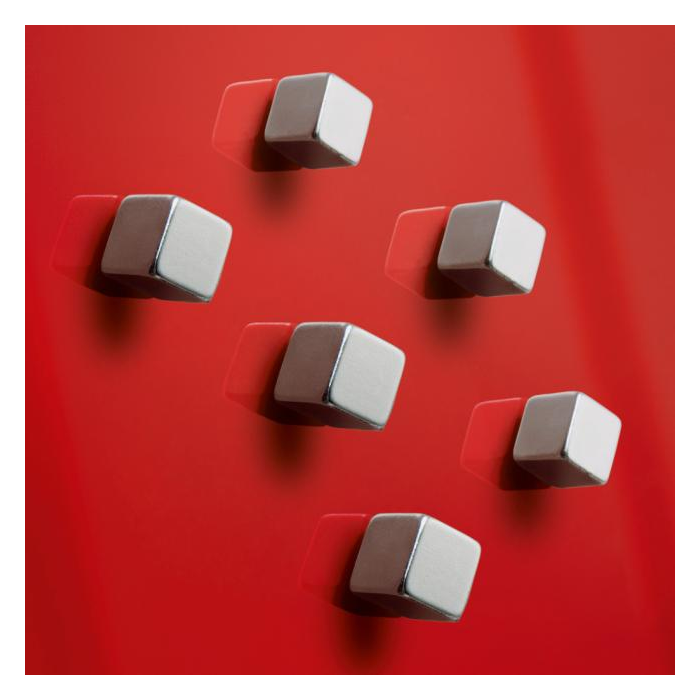 Extra silné lesklé strieborné magnety z poniklovaného neodymu v tvare kocky ideálne na sklenené tabule udržia cca 8 hárkov papiera. Rozmery 10 × 10 × 10 mm. Balenie 6 kusov.