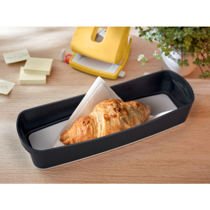 Značková kolekcia Leitz Cosy vám umožní cítiť sa ako doma, nech už vás pracovný deň zavedie kamkoľvek. Vďaka minimalistickému dizajnu a lákavej matnej povrchovej úprave pridáte svojmu pracovnému priestoru štýl a farbu. Organizér je ideálny na uloženie všetkých malých predmetov, ako sú písacie potreby, drobné domáce náradie alebo napríklad make up. MyBox má certifikáciu Food safe, je vhodný na prenos teplých aj studených jedál, na uloženie potravín ako čaju, kávy, mlieka a cukru vo firemnej kuchynke či na recepcii, doma na ovocie a pod. Organizér je súčasťou modulárneho úložného systému Leitz MyBox, je kompatibilný s malým organizačným boxom, ale môže byť používaný aj samostatne. Rozmery: š 307 × v 55 × h 105 mm. Štýlový organizér na malé predmety alebo organizačná priehradka do boxu veľkosti S Leitz MyBox. Zaujme lákavými matnými farbami a minimalistickým dizajnom. Farba sivá.