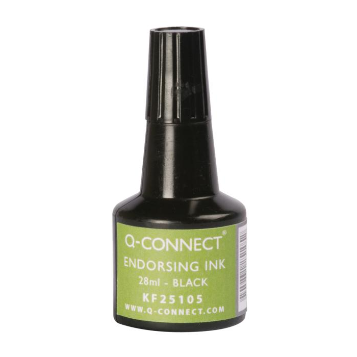 Q-Connect univerzálna pečiatková farba bezolejová, vhodná na gumené a samofarbiace pečiatky. Objem 28 mℓ. Väčšie balenie 10 ks. Farba čierna.