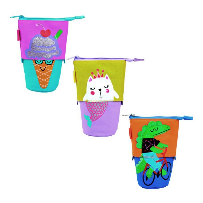 Školský peračník, stojaci, vyrobený z odolného materiálu. Mimoriadne priestranný, so zipsom, bez vybavenia. Rozmery: 23 x 5,5 cm. Farba: mix farieb.