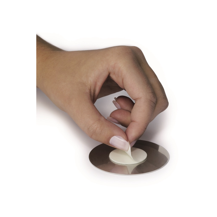 Piktogram na vysoko kvalitnej brúsenej nehrdzavejúcej oceli. Vytlačený symbol je odolný voči poškriabaniu a silnému opotrebeniu. Priemer 83 mm, vďaka lepiacej páske na zadnej strane sa piktogram dá použiť na rôzne povrchy. Farba strieborná, potlač čierna.