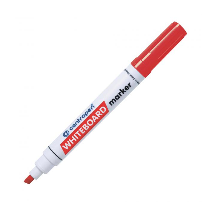 Za sucha stierateľné svetlostále popisovače na alkoholovej báze, vhodné na biele smaltované tabule a na neporézne povrchy. Zdravotne nezávadné. Väčšie balenie 10 ks v jednej farbe. Skladujte vo vodorovnej polohe. Hrot zrezaný, šírka stopy 1 - 4,5 mm. Farba červená.