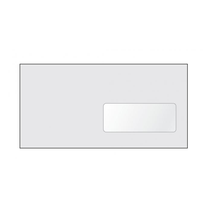 Biele obálky rozmeru 110 × 220 mm, vyrobené z bezdrevného papiera, 80 g/ m2. Samolepiace s okienkom z priehľadnej fólie vpravo.