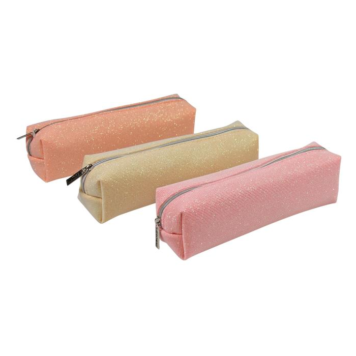 Puzdro na perá so zipsom v glittrovom prevedení. Mix farieb. Rozmery: 20 x 5,5 x 5 cm.