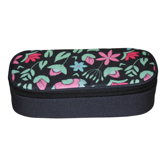 Oválny peračník na zips, 1 vnútorná chlopňa s pútkami na pero, bez náplne, materiál polyester, Š x V x H: 21 x 5,5 cm. Motív Srdce a Kvety.