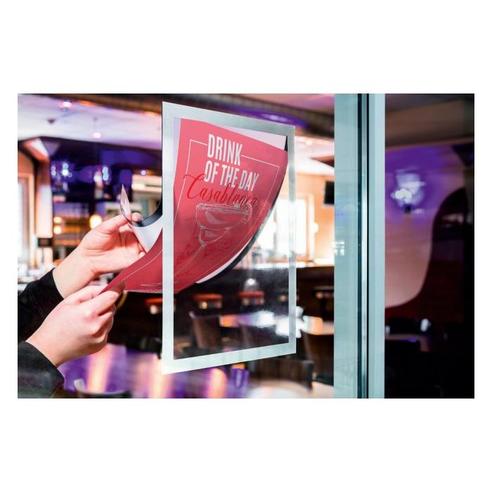 Informačný panel so statickým priľnutím pre použitie na okná, vystavené priamemu slnečnému žiareniu. S ochranou voči UV žiareniu. Odoláva teplotám až do 70 °C. V prípade potreby je ľahko premiestniteľný.