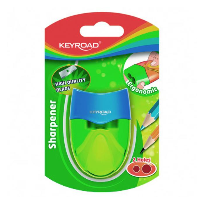Plastové strúhadlo KEYROAD, dvojité. Balenie: blister. Farba: mix farieb.
