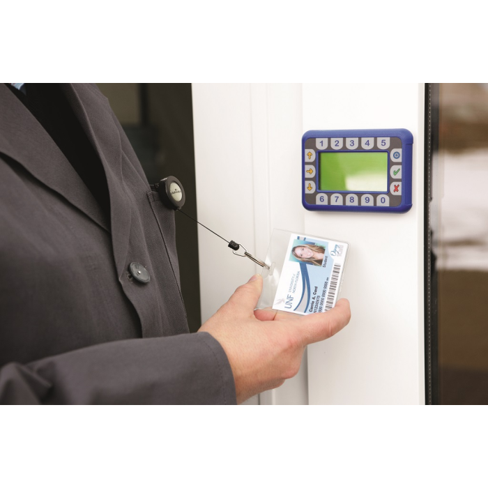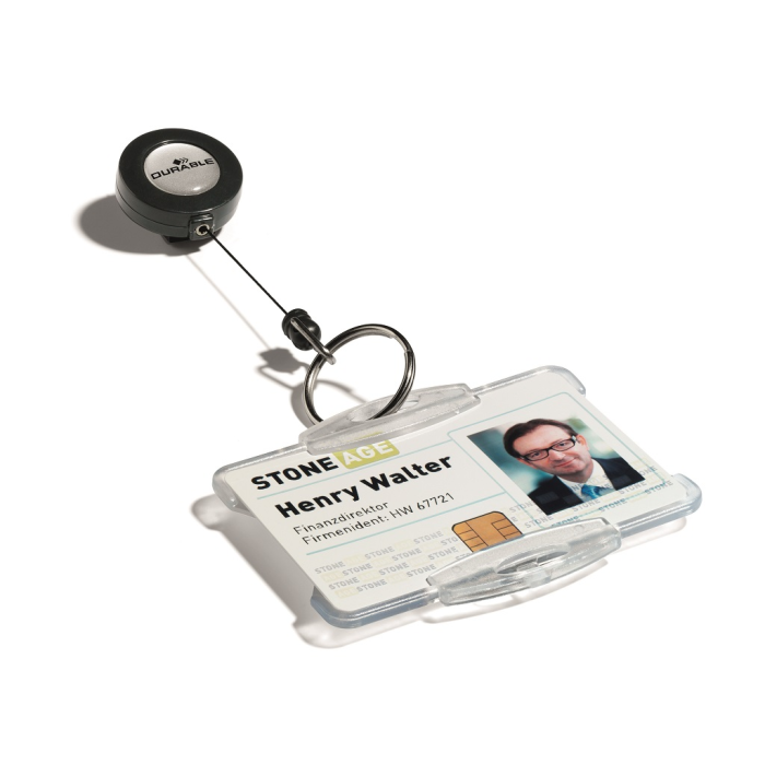 Vysúvací kotúčik s možnosťou vysunutia do 80 cm. Vhodný na uchytenie všetkých visačiek značky Durable s perforáciou. Karička priemeru 25 mm. Balenie 10 ks.