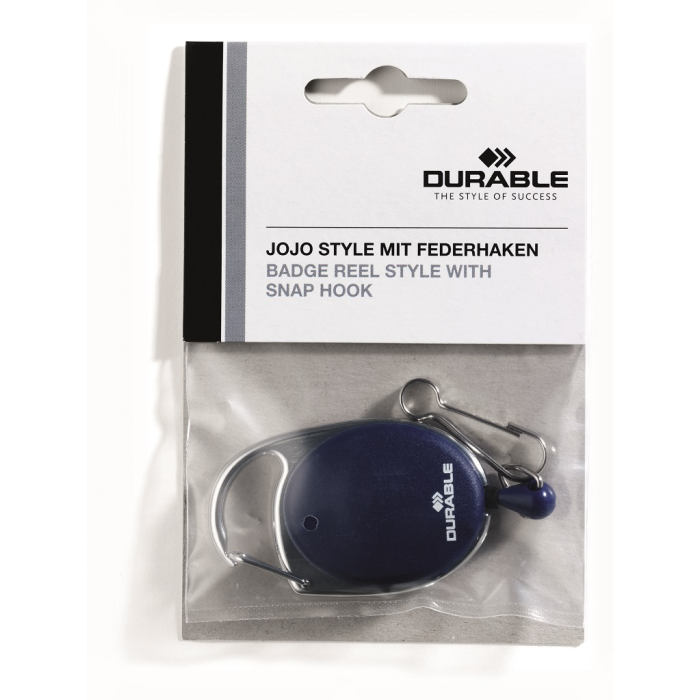 Štýlový kotúč s oválnym farebným telom a kovovým klipom so svorkou poskytuje rýchlu a jednoduchú manipuláciu s visačkou, príp.kartou. Vysunutie kotúča do dĺžky 80 cm. Dodávaný bez visačky. Farba tmavomodrá.