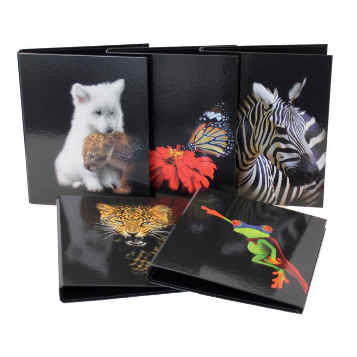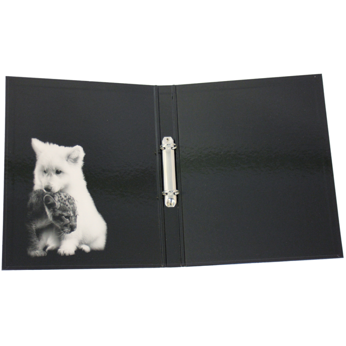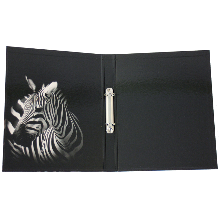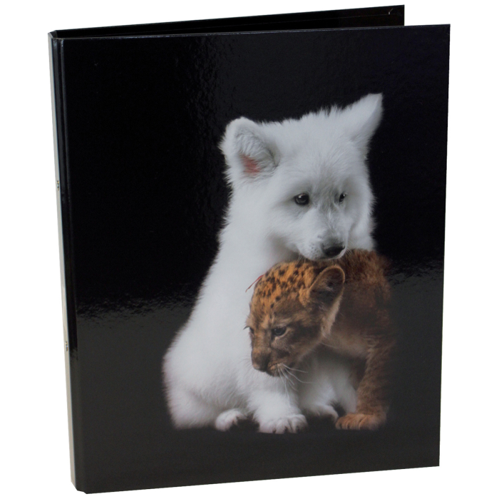 Zakladač krúžkový, 5 rôznych vzorov zvierat (2 z každého), vo vnútri s čirnobielou potlačou, pre formát DIN A4, 2 krúžky, priemer krúžku 25 mm, lesklý laminovaný papierový povrch.