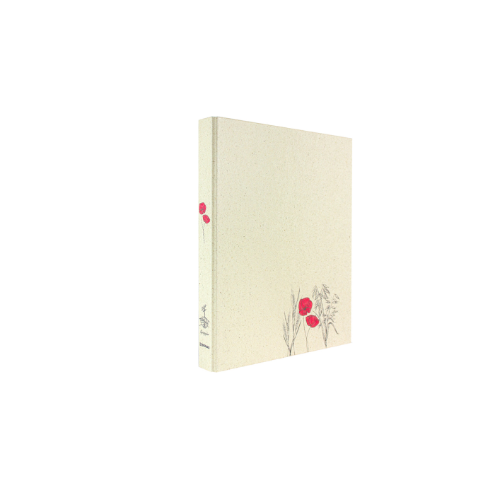 Zakladač krúžkový, 5 rôznych vzorov (2 z každého), vonkajší materiál: trávový papier, farebne potlačený, vnútorný materiál: sivý kartón, vnútorná podšívka: prírodný trávový papier, pre formát DIN A4, 2 krúžky, priemer krúžku 25 mm