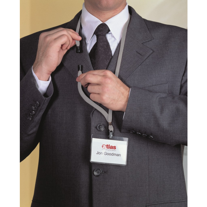 Remienok s bezpečnostnou poistkou. Poistka sa uvoľní pri zachytení remienka alebo silnom potiahnutí. Vhodný ku všetkým visačkám značky Durable. Dĺžka 44 cm, šírka 10 mm. Balenie 10 ks.